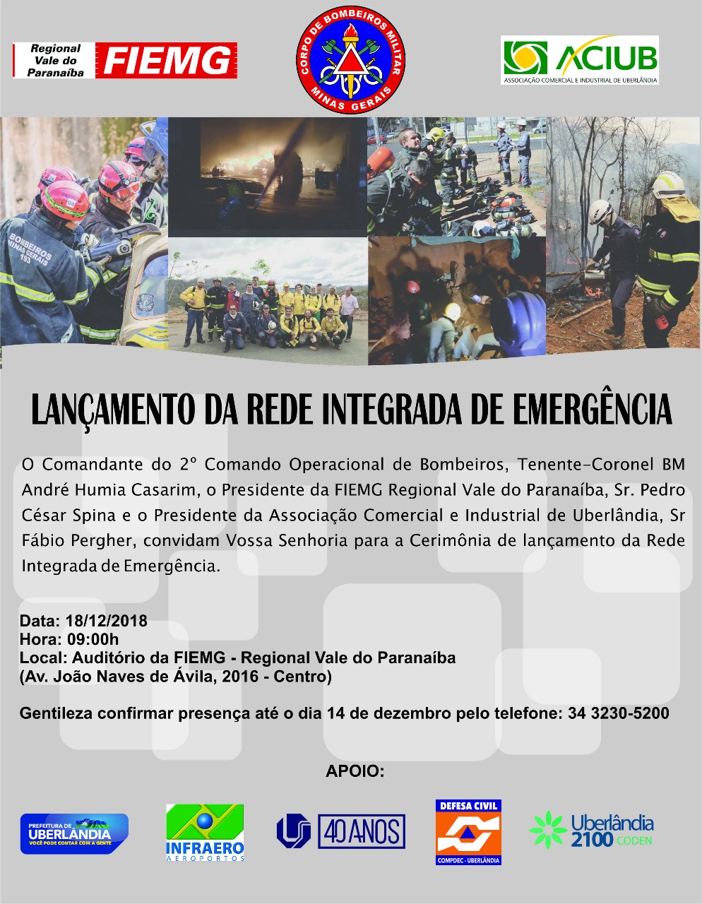 Uberlândia/MG – Foi lançada em Uberlândia a primeira Rede Integrada de Emergência do Estado de Minas Gerais (Rinem). O projeto, idealizado pelo 5º Batalhão do Corpo de Bombeiros Militar (5º BBM) e 2º Comando Operacional de Bombeiros (2º COB), visa reduzir os riscos de desastres na cidade.