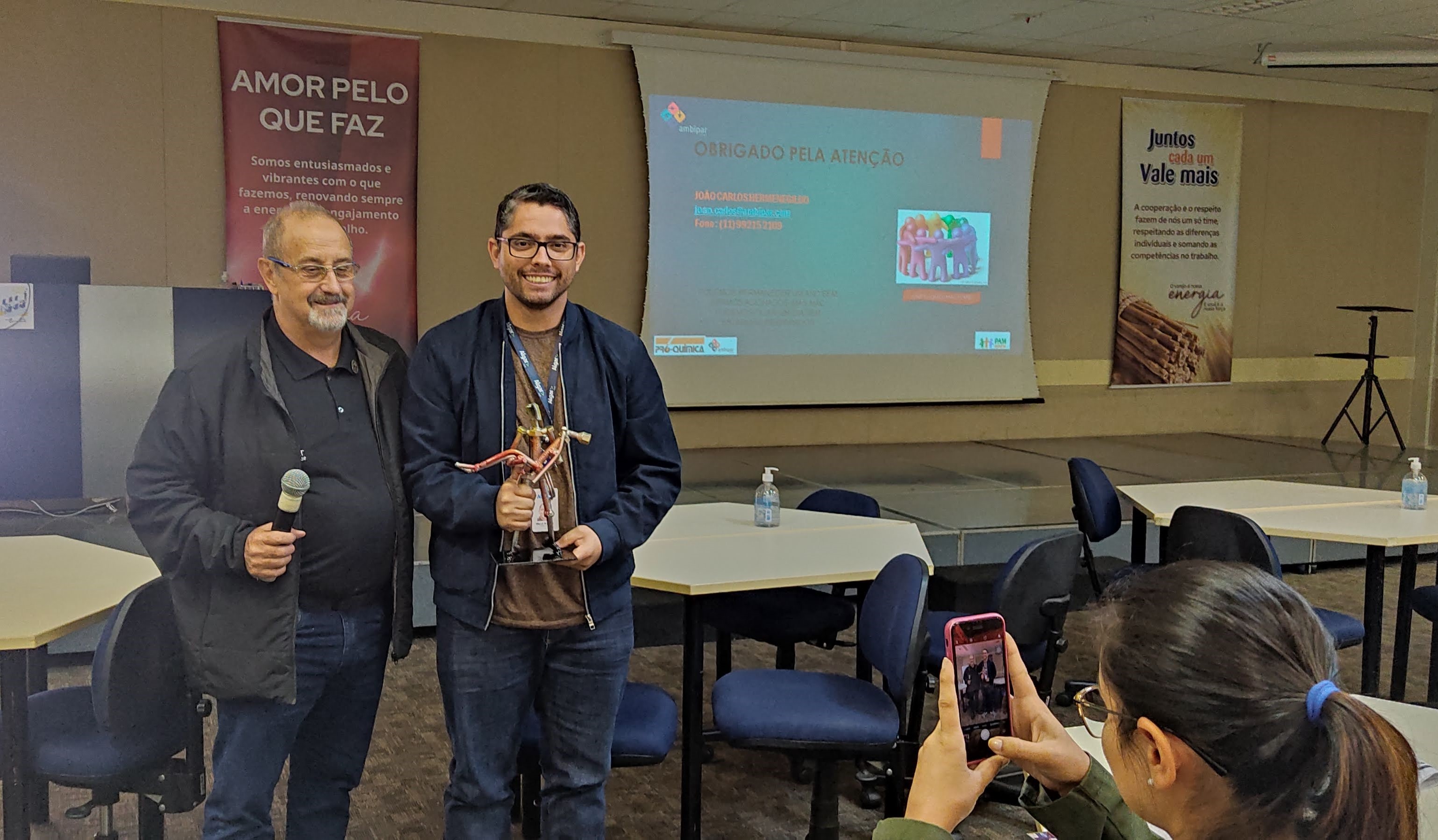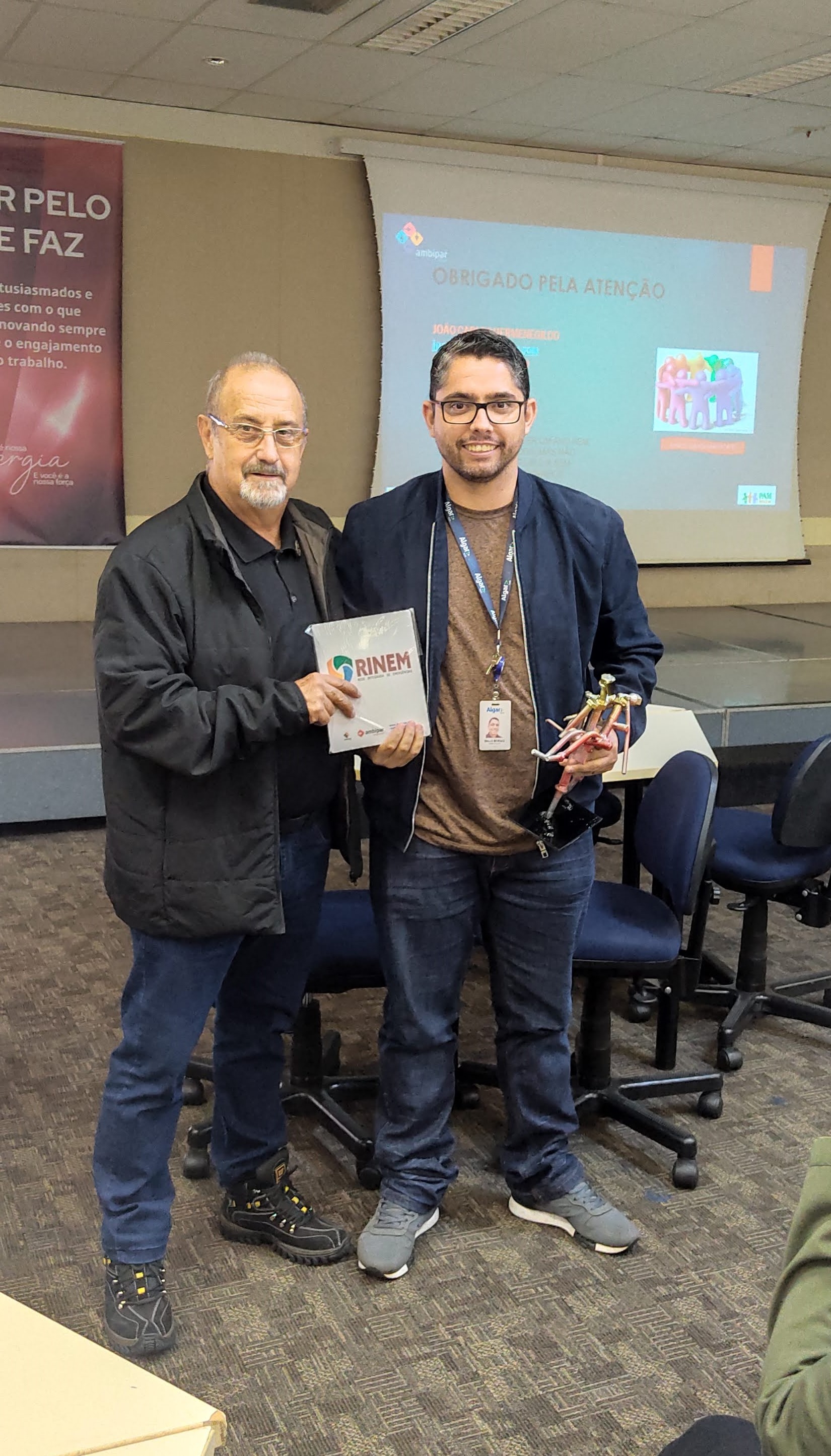 "Chuca" ministrou sua palestra sobre a atuação das Redes Integradas de Emergência e Planos de Auxílio Mútuo que atuam no Estado de São Paulo e trouxe como presente uma linda escultura que foi entregue ao atual presidente da RINEM Uberlândia, Diego Rodrigo Borges, e será repassada aos futuros presidentes de acordo com a mudança das gestões.